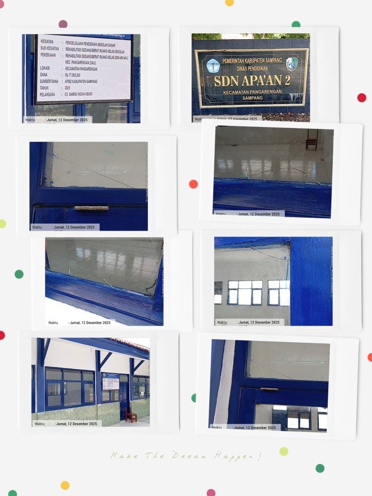 Sampang, 2025 – Proyek rehabilitasi ruang kelas SD Negeri Apaan 2 di Desa Apaan, Kecamatan Pangarengan, Kabupaten Sampang, yang mendapatkan dana bantuan dari Dana Alokasi Umum (DAU) sebesar Rp77.585.205, kini menjadi sorotan tajam publik. Pasalnya, meski bertujuan untuk memperbaiki kondisi ruang kelas yang rusak, hasil proyek ini justru memperlihatkan kualitas yang sangat meragukan, diduga melibatkan praktik korupsi, kolusi, dan nepotisme (KKN) yang merugikan negara.