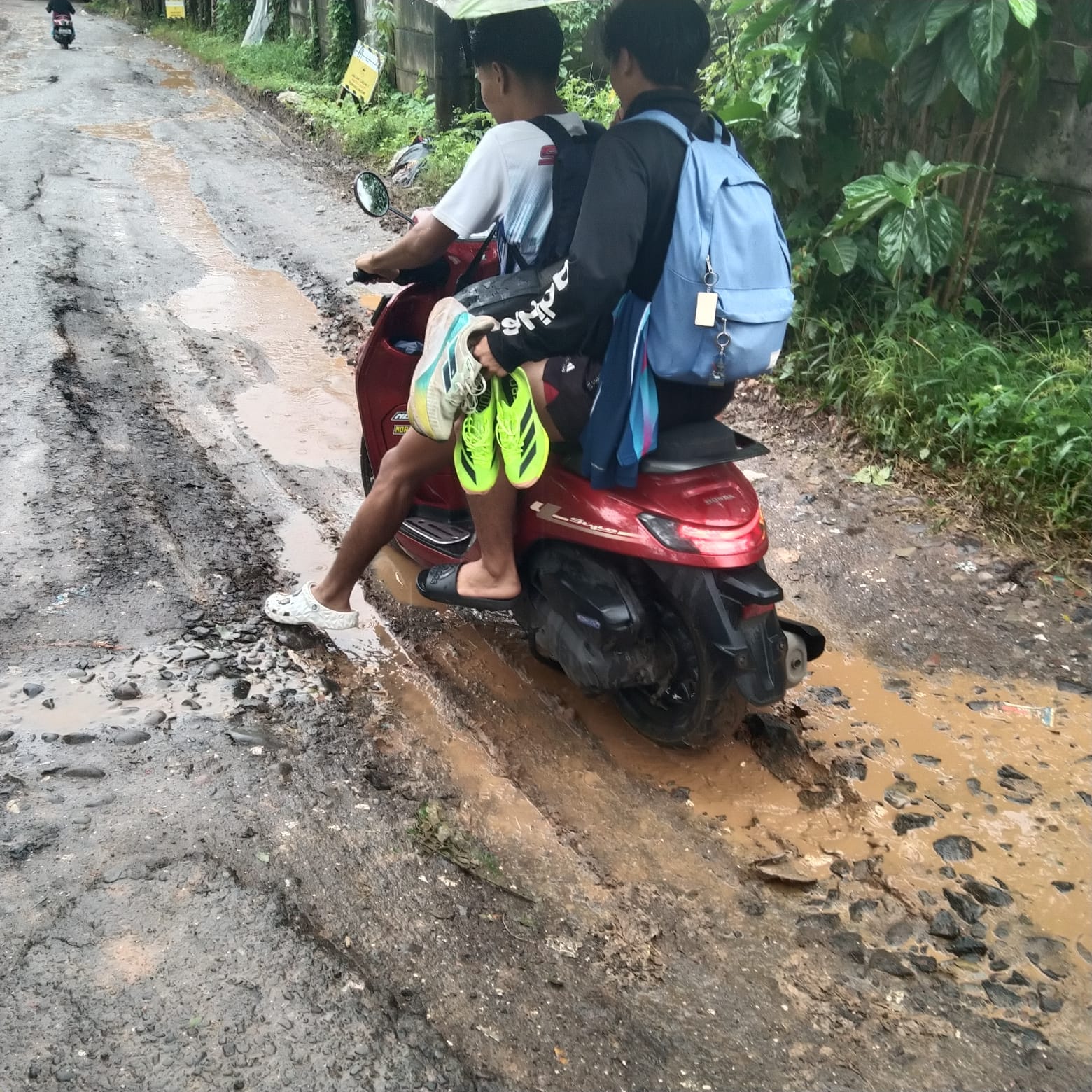 Akibat kondisi jalan yang rusak berat, sejumlah siswa dilaporkan terjatuh saat mengendarai sepeda motor, terutama pada pagi hari ketika siswa menuju sekolah. Orang tua siswa pun mengaku khawatir dengan keselamatan anak-anak mereka yang harus melewati jalan berlubang dan licin setiap hari.