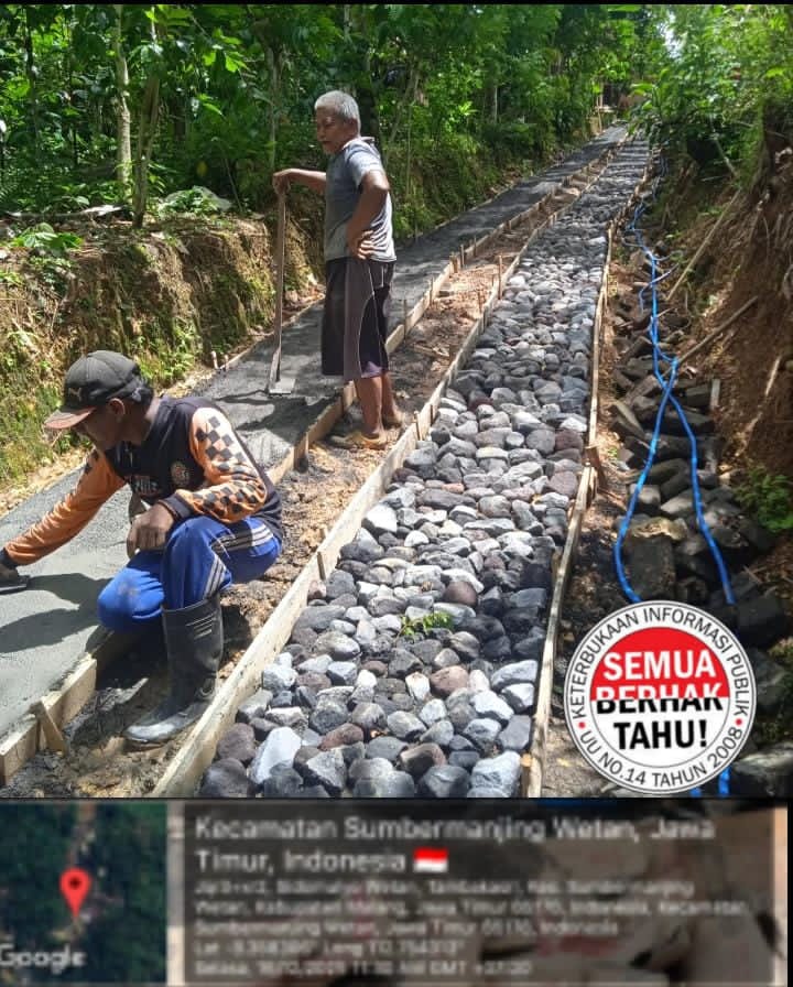Malang – Proyek pembangunan infrastruktur di Desa Tambakasri, Kecamatan Sumbermanjing Wetan, Kabupaten Malang, diduga dikerjakan secara siluman tanpa papan nama Rencana Anggaran Biaya (RAB).